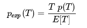 当乘客随机到达公交车站时,他们所经历的时间间隔的概率将受到p(T)的影响,但也受到T本身的影响:间隔时间越长,乘客遇到这一间隔的概率就越大。