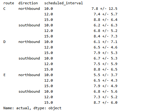 grouped = subset.groupby(['route', 'direction', 'scheduled_interval'])