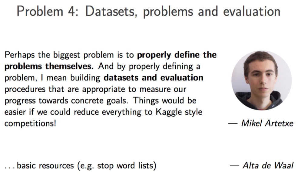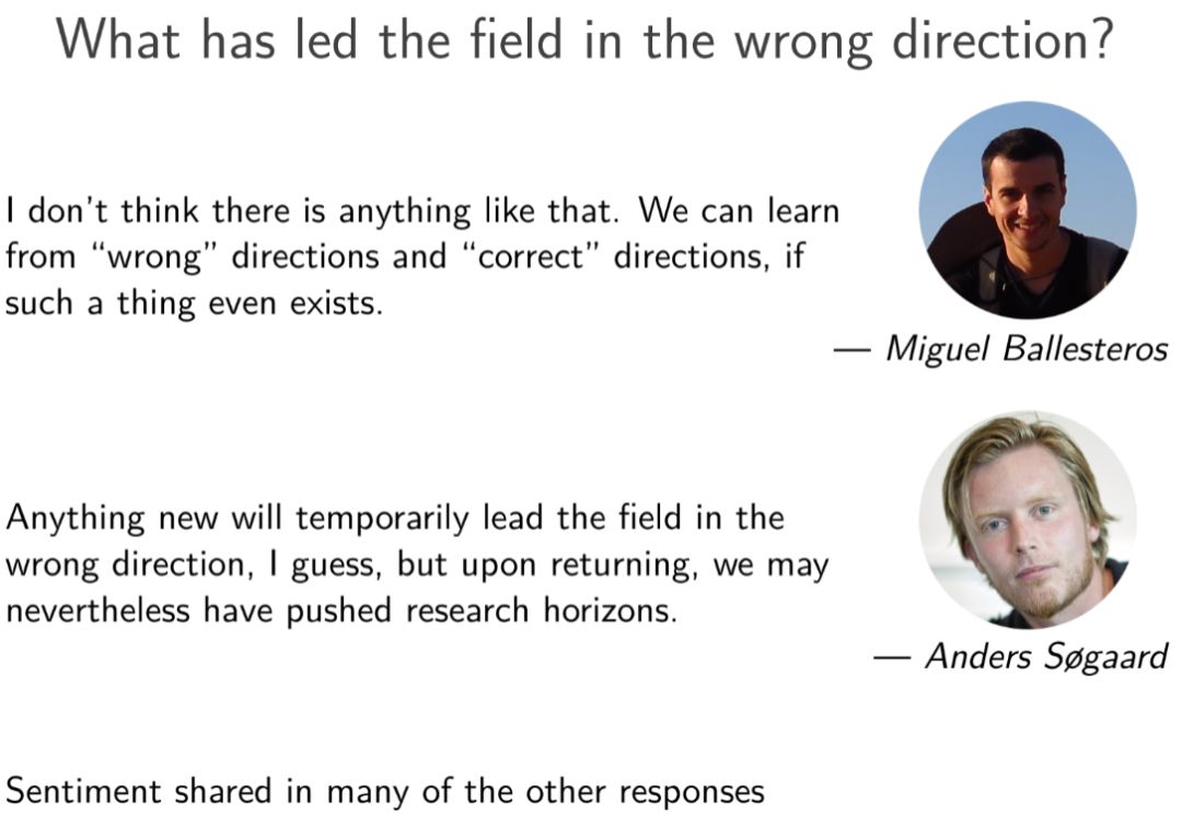 Sebastian Ruder也整理了20余位研究者的回应,并在大会的报告中给出了以下总结。
