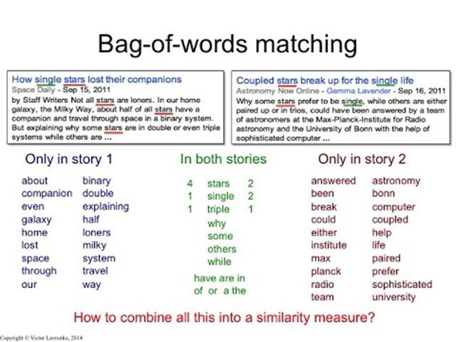 大数据文摘出品 作者:龙心尘、July 在开始正文之前,我们先回顾一下事件背景。 10月21日,朋友圈被一篇名为《估值175亿的旅游独角兽,是一座僵尸和水军构成的鬼城?》的文章刷屏。文章作者小声比比指控在线旅游网站马蜂窝存在点评大量造假的情况,包括从其他网站如大众点评、携程等抓取相关点评,及通过水军撰写虚拟点评。 文章吸引了包括本人在内的大量吃瓜群众的眼球。毕竟一家估值175亿的互联网公司被这么多实锤猛捶,十分罕见。 关于此事件相关的分析文章已经不少,但是从技术本身来分析的文章却不多。作为一个技术宅,我还是想从自己的老本行NLP上探讨一下马蜂窝事件中反作弊方与作弊方的技术实现方案。 分析思路 其实在AI码农看来,马蜂窝事件可以简化为作弊与反作弊的问题。该事件中至少存在三方:马蜂窝平台、抄袭水军、小声比比指控方。我们可以先假设马蜂窝与小声比比双方均没有主观恶意,当然抄袭水军是恶意作弊的。而主要问题就是如何通过人工智能技术找到作弊的点评、账号、评论和攻略。 当然如果想系统地处理反作弊问题,需要探讨的人工智能技术比较多样,包括NLP、时间序列分析、用户画像、数据挖掘与分析等。 而为了简化讨论、抓住重点,我们主要关注其中的NLP技术,毕竟本事件处理的主要内容都是文本。 简单梳理一下几个争论的焦点,大致包括: 1. 马蜂窝是否有大量抄袭点评 2. 马蜂窝是否有大量抄袭账号 3. 马蜂窝是否有大量水军评论 4. 马蜂窝是否有大量洗稿攻略 我们接下来就一个一个探讨。 查找水军:文本挖掘堪称“烘干神器” 根据马蜂窝官网提供的数据,马蜂窝全站拥有超过2100万条点评,是马蜂窝对外展示的核心竞争力之一。小声比比声称:2100万条真实点评有1800万条是从大众点评和携程里抄袭过来。而且他们的判断标准十分严苛:一字不差才算抄袭,十句话有一句不同就不算抄袭。 我们可以试想一下,如果让你实现一个程序,判断两个文本存在抄袭,你会怎么办? 从一道面试题说起 不知各位程序员在刷面试的时候有没有遇到求“最长公共子串”的算法题? ——已知子串是在原字符串中是连续不间断的字符串,输入两个字符串X、Y,求X、Y的最长公共子串。 这个面试题其实就适合我们判断抄袭的业务场景——如果最长公共子串超过一定长度,就认为X、Y之间存在抄袭。 比如设计公式: 两个字符串X、Y之间的相似度=最长公共子串的长度/X与Y长度的最大值 当相似度大于阈值的时候认为文本之间存在抄袭。 这个面试题的标准答案是贪心算法(或者说动态规划),其时间复杂度是O(n2)。它的优点很明显:子串的判断是完全匹配的,绝对属于实锤,判断抄袭文本的准确率是非常高的。 然而理想很丰满,现实很骨感。在实际应用中,我们会发现它不太好用。 首先是该算法不够灵活,召回率低。 TIPS:召回率率与准确率的区别: 1.召回率,所有抄袭文本中被判断为抄袭的文本所占的比例。 2.准确率,所有被判断为抄袭的文本中真是抄袭文本所占的比例。 3.准确率与召回率往往是一对矛盾,难以同时兼顾。 所以,如果作弊者在文字中添加一些无损原意的信息或者替换一些同义词,该算法就无法查出。如对于句子“我们这些路痴好不容易找到了饭店的西门”,我们把“饭店”变为“餐馆”,把“我们”变为“俺们”,或者加入一些马蜂窝的网址,就使得新生成的句子与原句子不完全相同。这样就难以相互抄袭了。幸好马蜂窝的抄袭水军技术不行,直接大量硬抄,被这么轻易抓住也是活该。但如果他们稍微聪明一点做一些文本处理呢? 而且,该算法的另一个缺点更为致命:速度慢。对于2100万条真实点评,只有O(n2)的时间复杂度,处理起来还是挺辛苦的。 那怎么改进呢?NLP的工程师们早就想到这个问题,并且为此专门衍生出了NLP中一个非常核心的领域——文本表示。至于什么是文本表示,简单的说就是不将文本视为字符串,而视为在数学上处理起来更为方便的向量。而怎么把字符串变为向量,就是文本表示的核心问题。 最简单的文本表示:词袋子模型 词袋子模型是一种非常经典的文本表示。顾名思义,它就是将字符串视为一个“装满字符(词)的袋子”,袋子里的词语是随便摆放的。而两个词袋子的相似程度就以它们重合的词及其相关分布进行判断。 举个例子,对于“我们这些路痴好不容易找到了饭店的西门”这句话,我们先进行分词,将所有出现的词储存为一个词表。然后依据“词语是否出现在词表中”可以将这句话变为[1,0,1,1,1,0,0,1,…]这样的向量,其中向量的每个维度唯一对应着词表中的一个词。可见这个向量的大部分位置是0值,这种情况叫作“稀疏”。为了减少存储空间,我们可以只储存非零值的位置。 表示成向量的方法有个非常大的好处是判断相似度速度非常快,只要计算两个向量的余弦值(cos)就够了。这只要O(n)的时间复杂度,比之前的方法快了整整一个数量级! 在实际应用中,这种方法非常常用。而且对于中等篇幅的文本词袋子模型的效果还不错。召回率比较高。 下图是演示两个英文文本通过词袋子模型判断相似度的例子。 但词袋子模型的缺点也很明显: 1.其准确率往往比较低。 2.只统计词语是否出现或者词频,会被无意义的词汇所影响。如“这里的猪脑、肥肠好吃”与“这里的沙拉好吃”会被认为很相似。一个改进