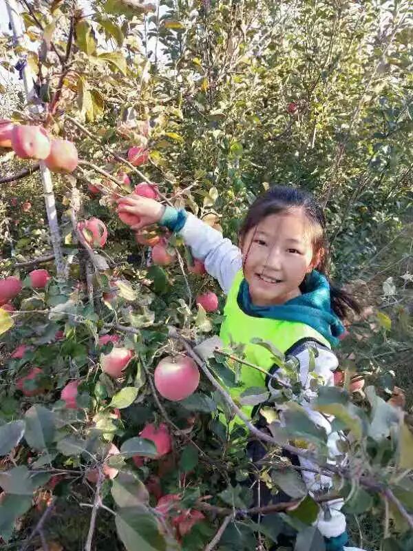 然后,同学们开始到苹果采摘区进行研究、采摘。又脆又甜的大苹果,来一个!