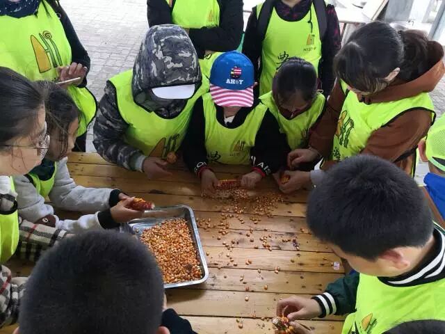 在接下来的搓玉米粒环节,大家真实的体验到了农事劳作的不易,一个个把小手都搓红了。