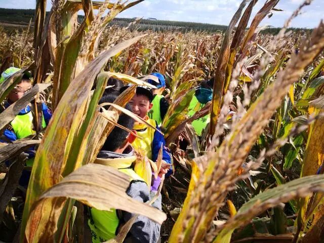 第一个项目是掰玉米,同学们听了农民伯伯简单的讲解后冲进玉米地,飞速挑选个头大、颗粒饱满的玉米,一会工夫就完成了每人四颗玉米的任务。