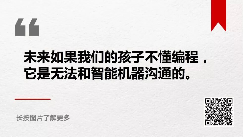 未来如果我们的孩子不懂编程,它是无法和智能机器沟通的。
