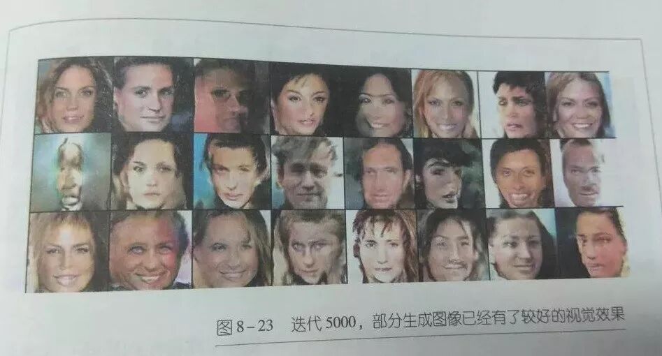 开头先介绍了数据空间的概念,之后则单独把生成网络和判别网络拎出来讲,之后进入了对抗过程的步骤演示,最终,终于生成了一些假模假样的明星照片。